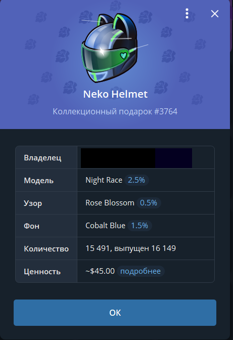 - ✅ Коллекционные (NFT): У них есть уникальный номер (например, #1090), параметры модели, фона или узора. Их можно продавать и передавать другим.