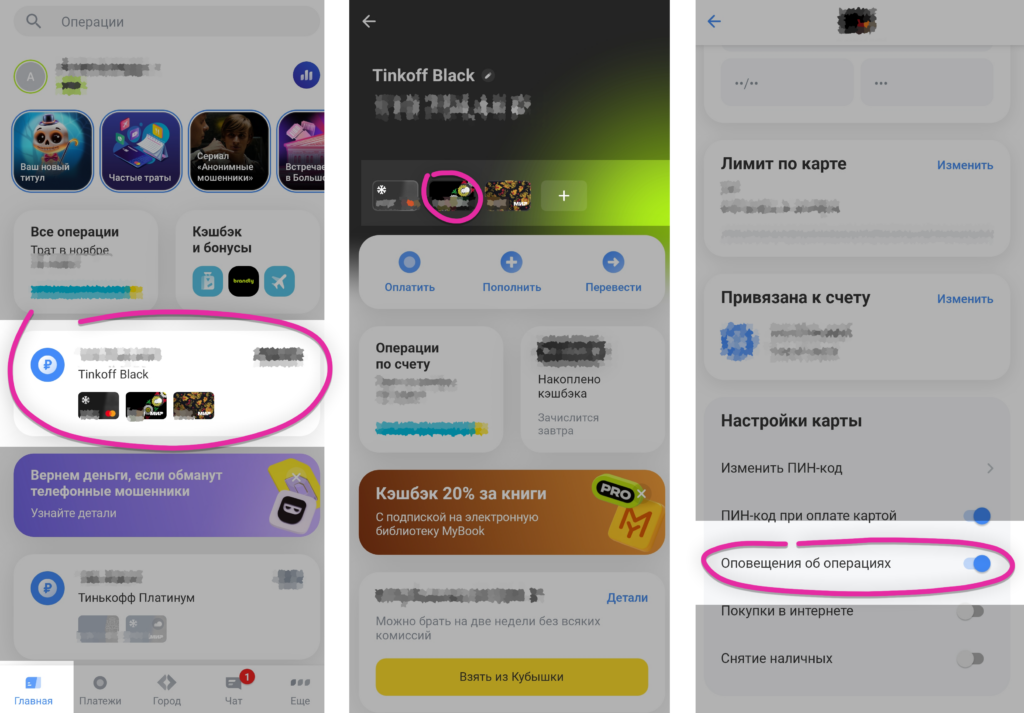 Уведомления о покупках, переводах и снятии наличных — отдельная платная услуга:
